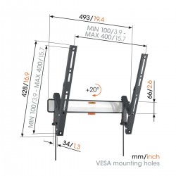 SUPPORT MURAL 32"-65" INCLINABLE POUR TV 25Kg MAXI
